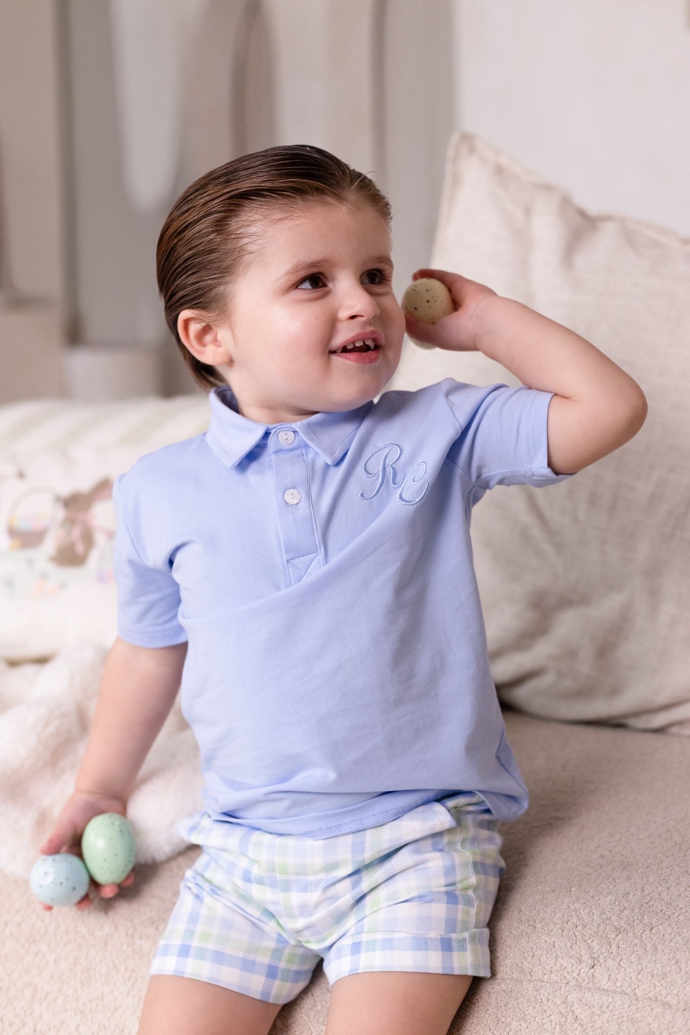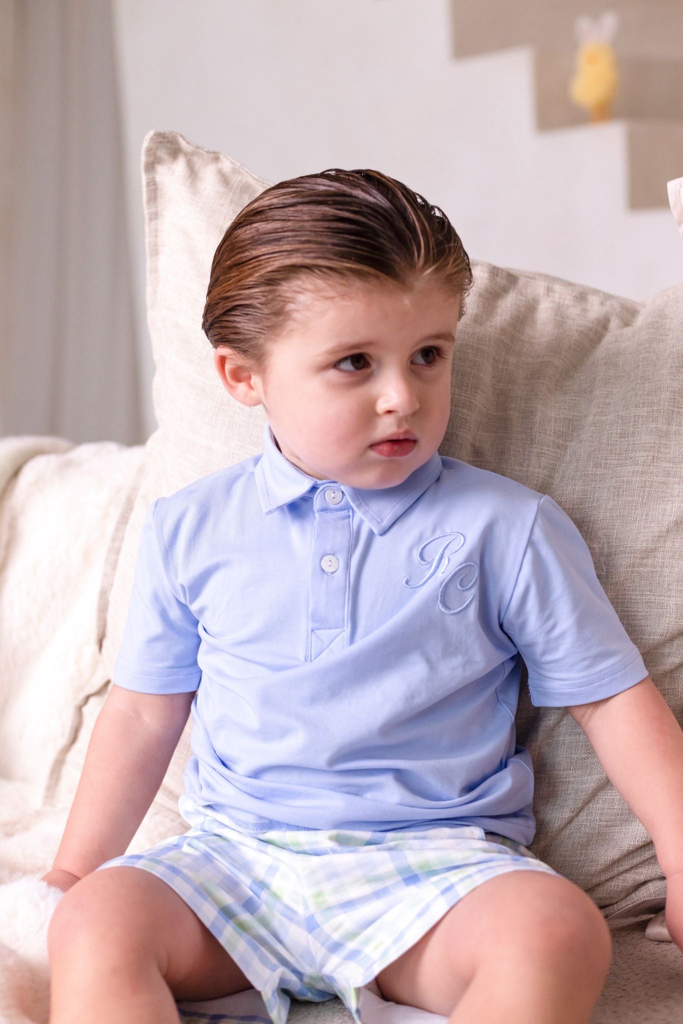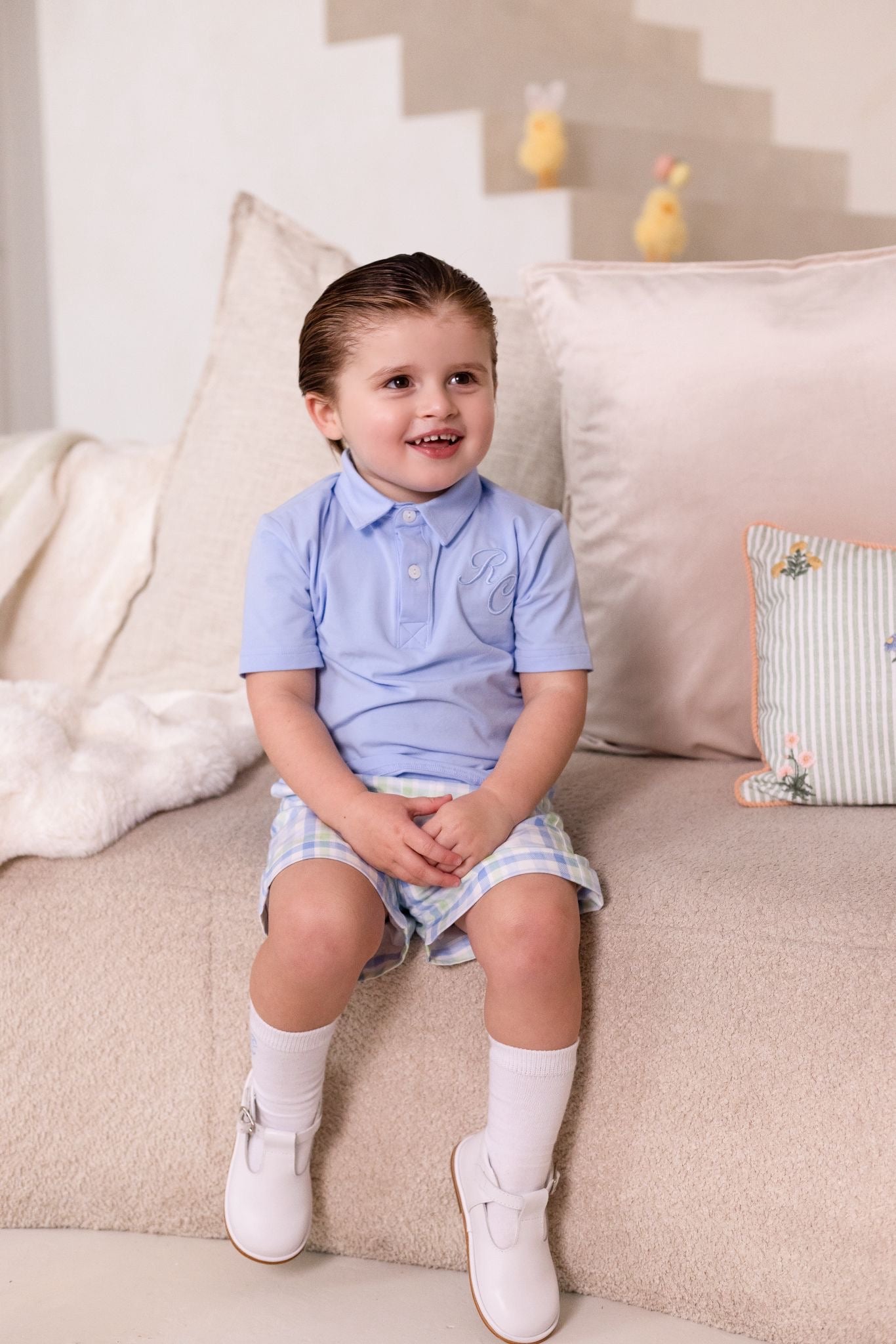 Boys Blue Polo and Gingham Short Set