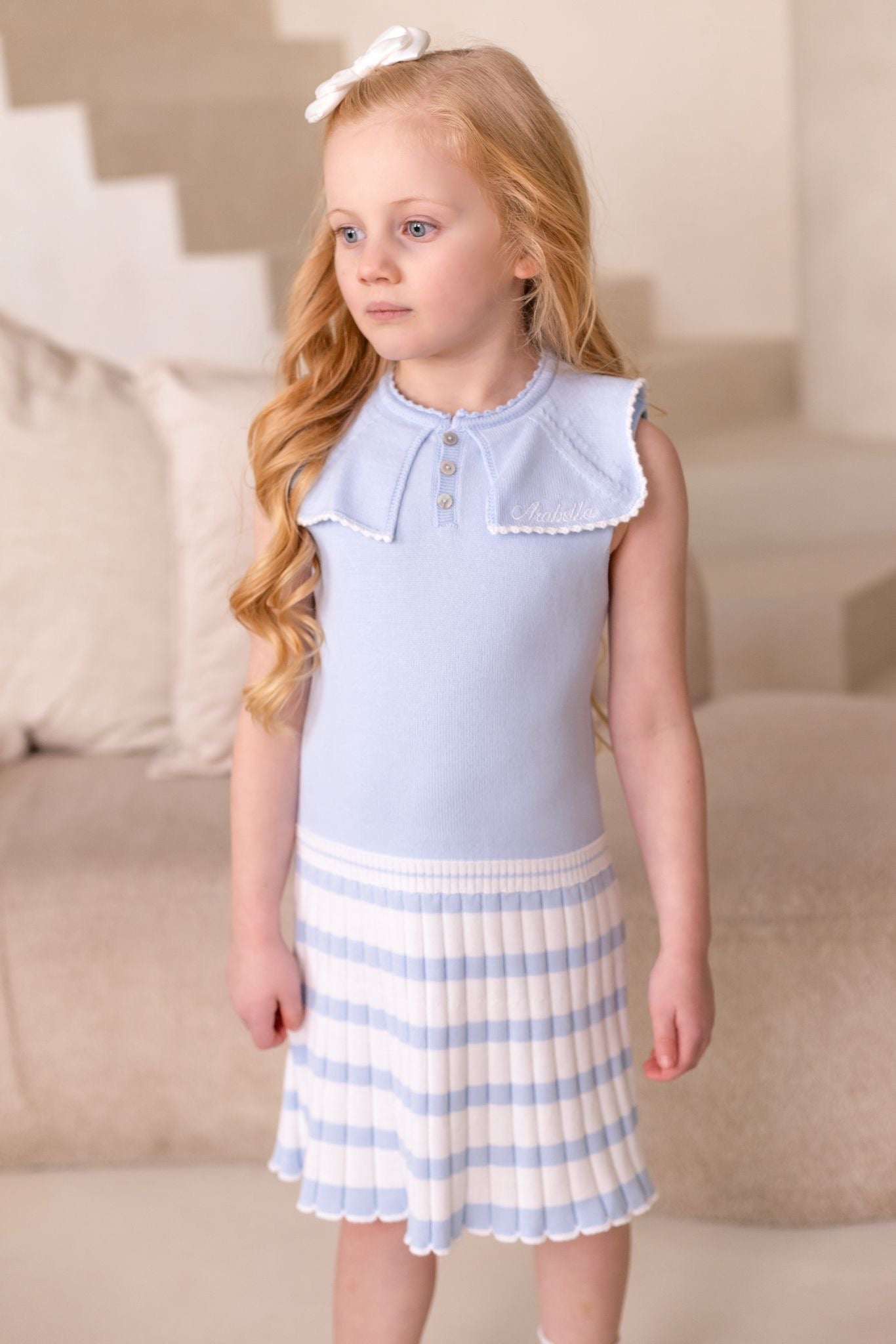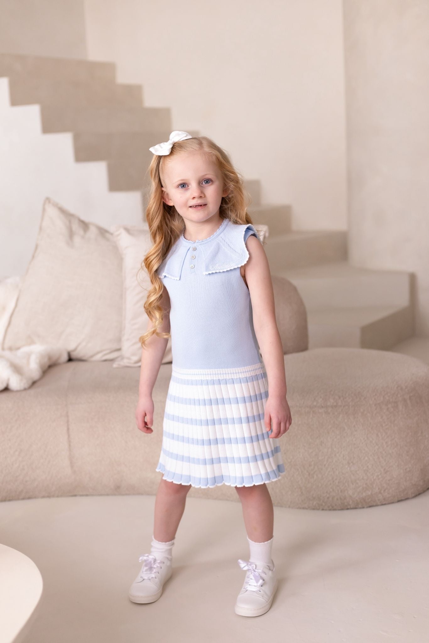 Girls Blue Knitted Stripe Dress