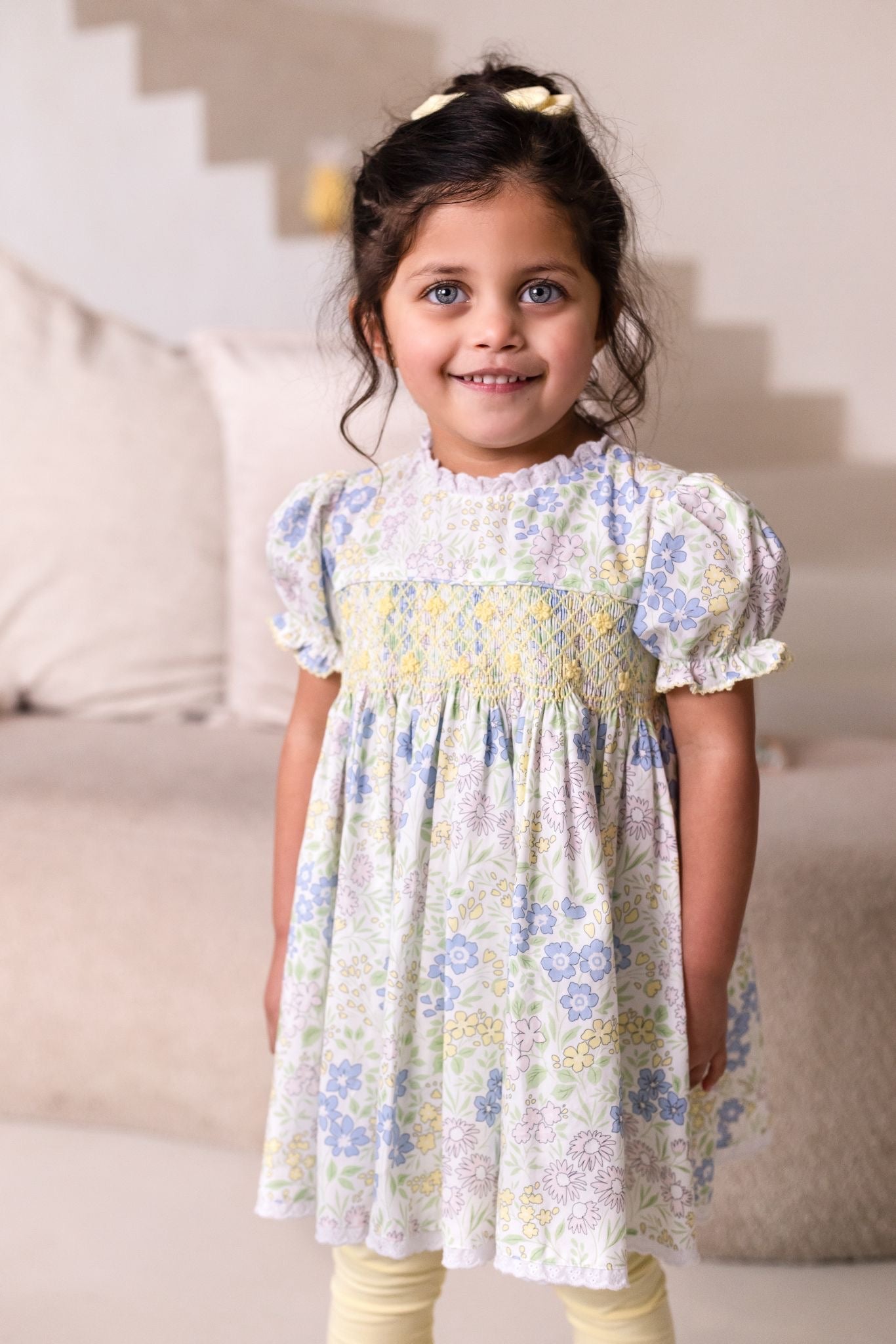 Girls Pastel Ditsy Smocked Loungewear