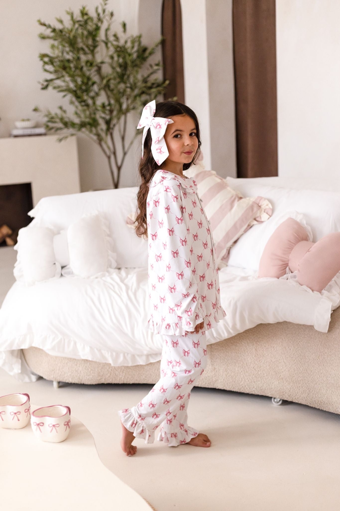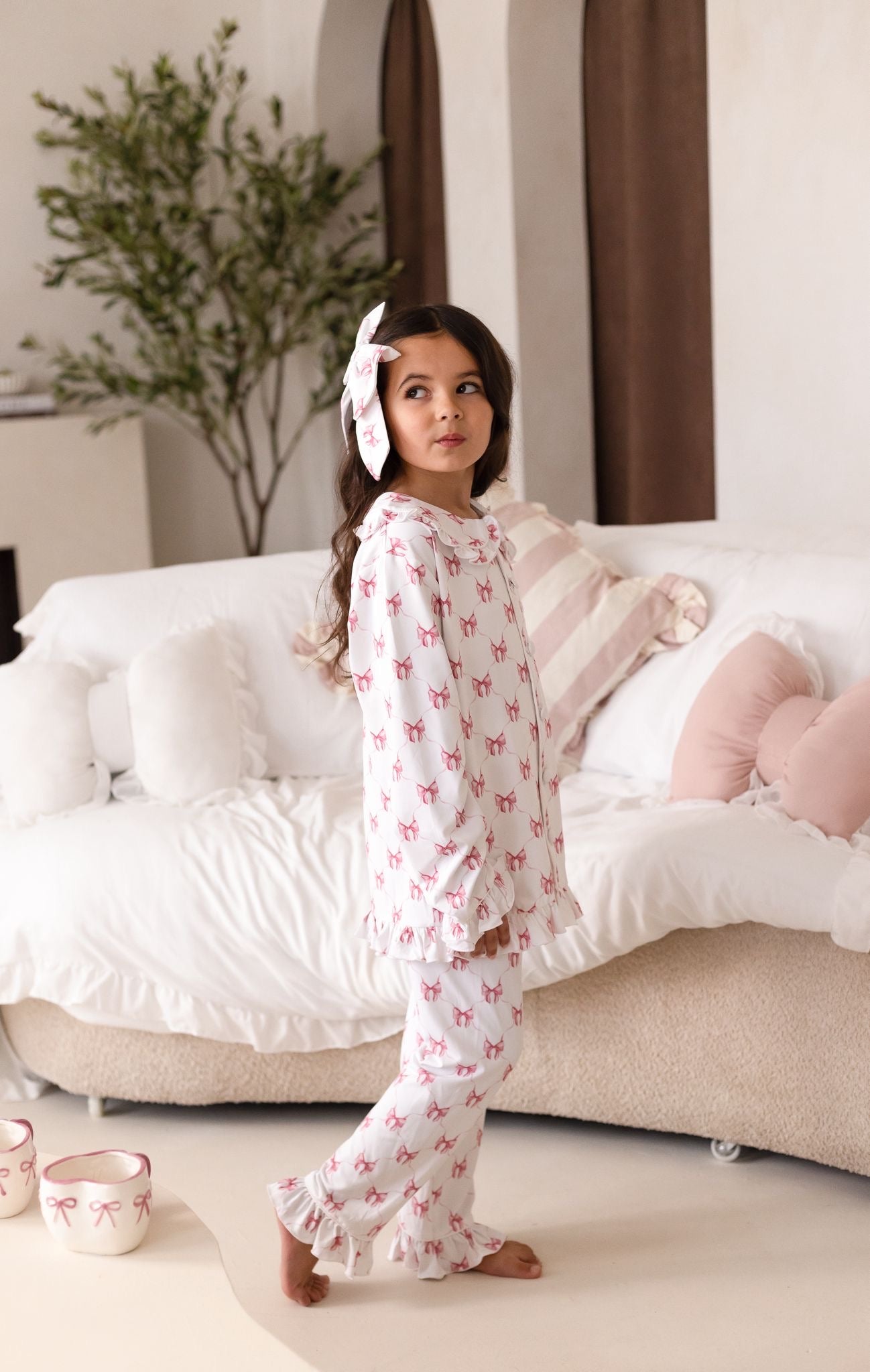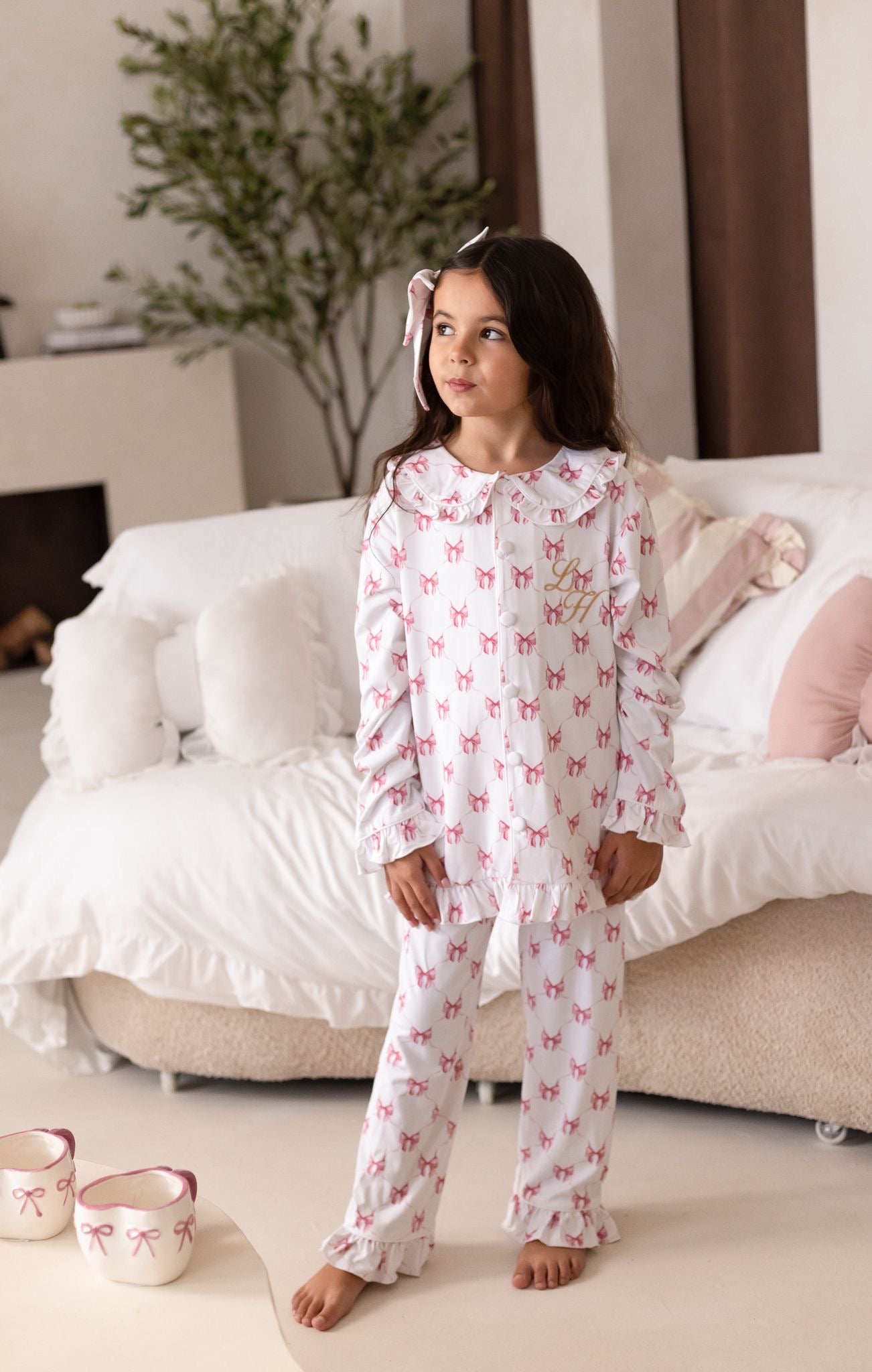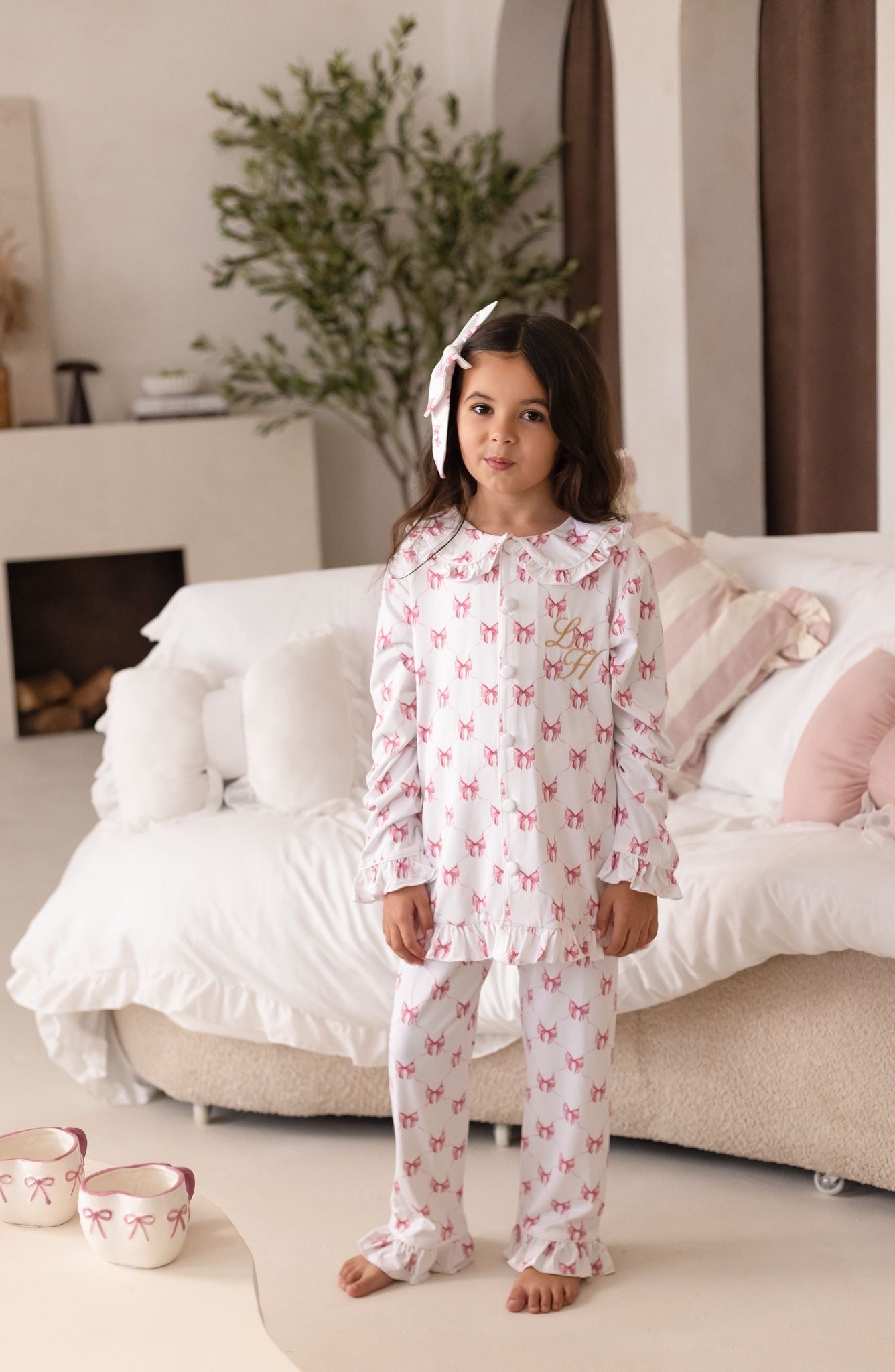 Girls Long Sleeve and Leg Pink Bow Print Pyjamas