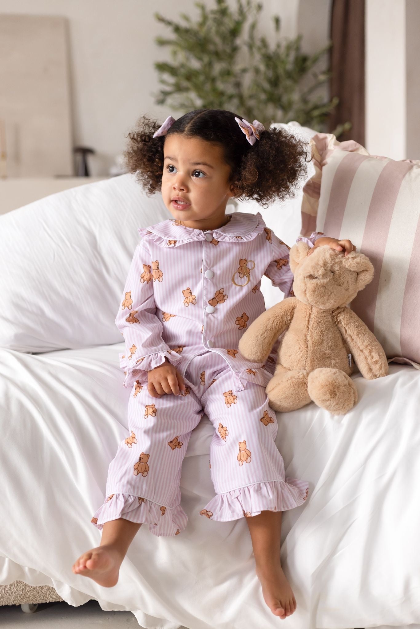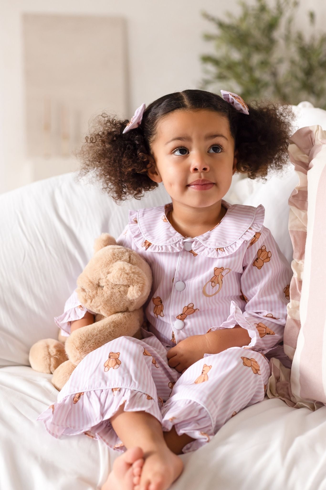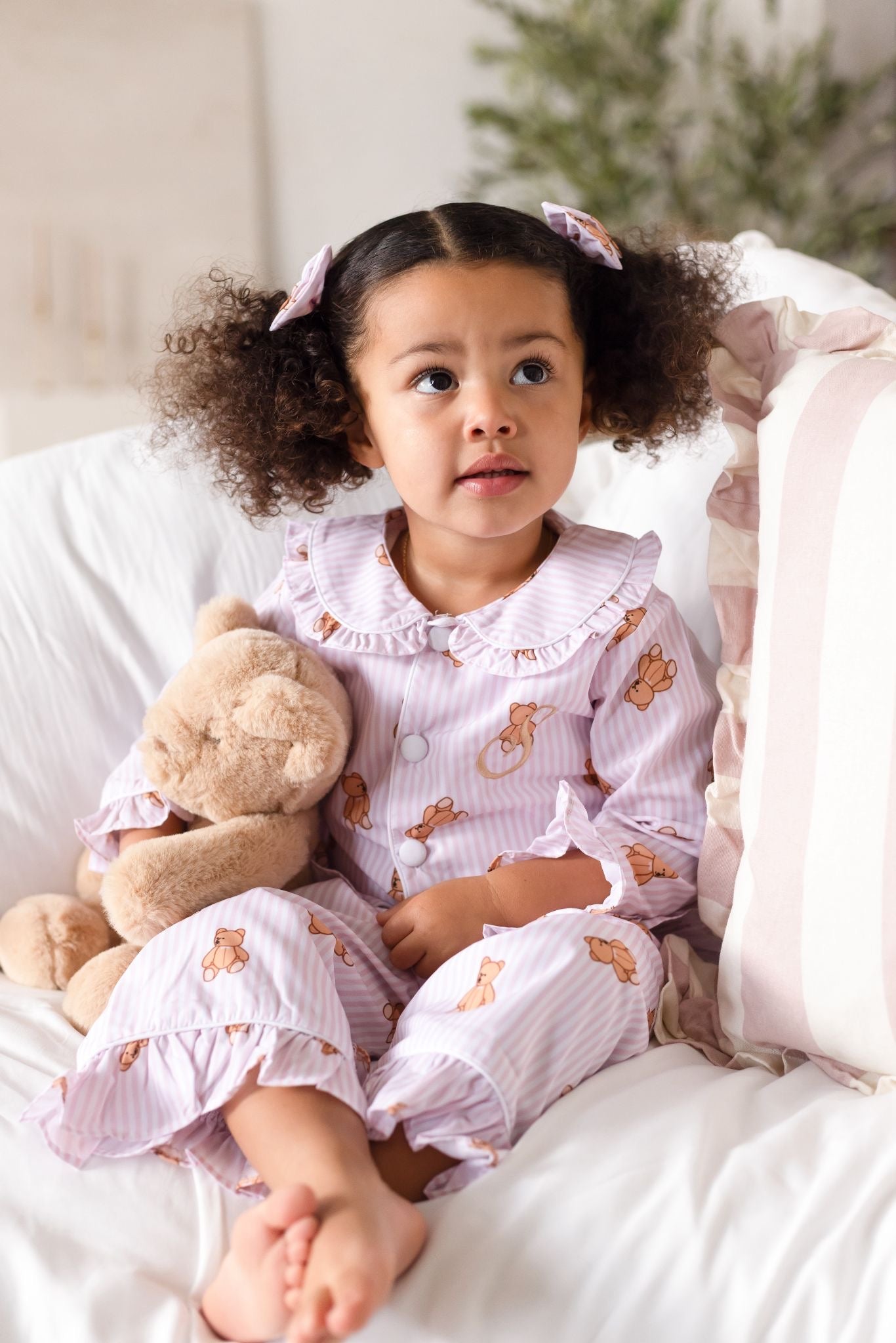 Girls Pink Stripe Teddy Bear Long Sleeve and Leg Pyjamas