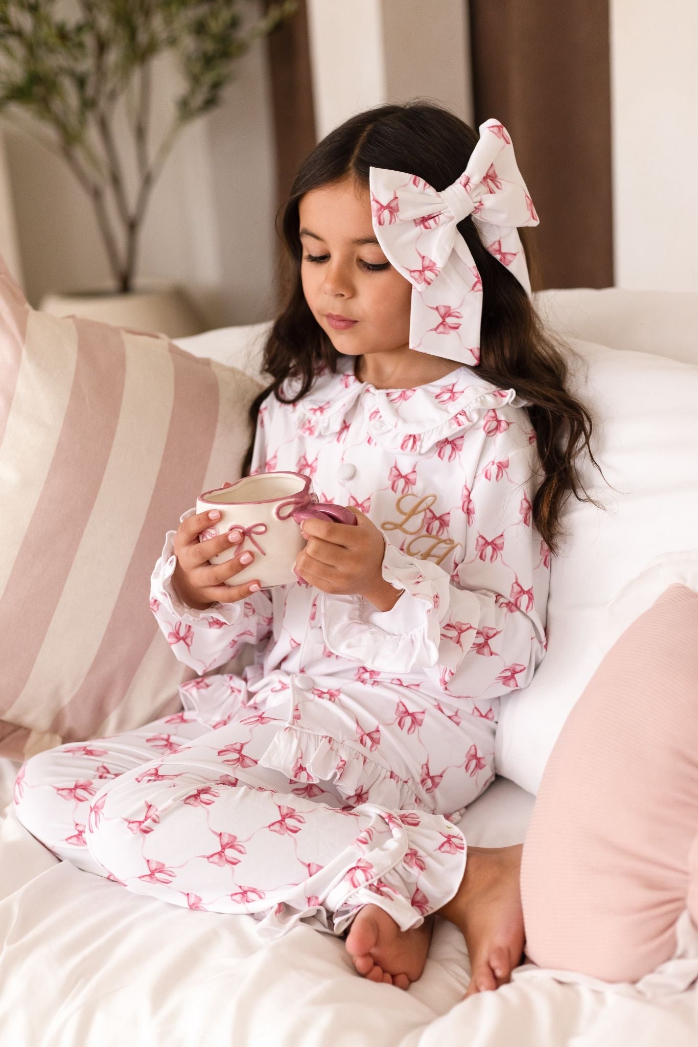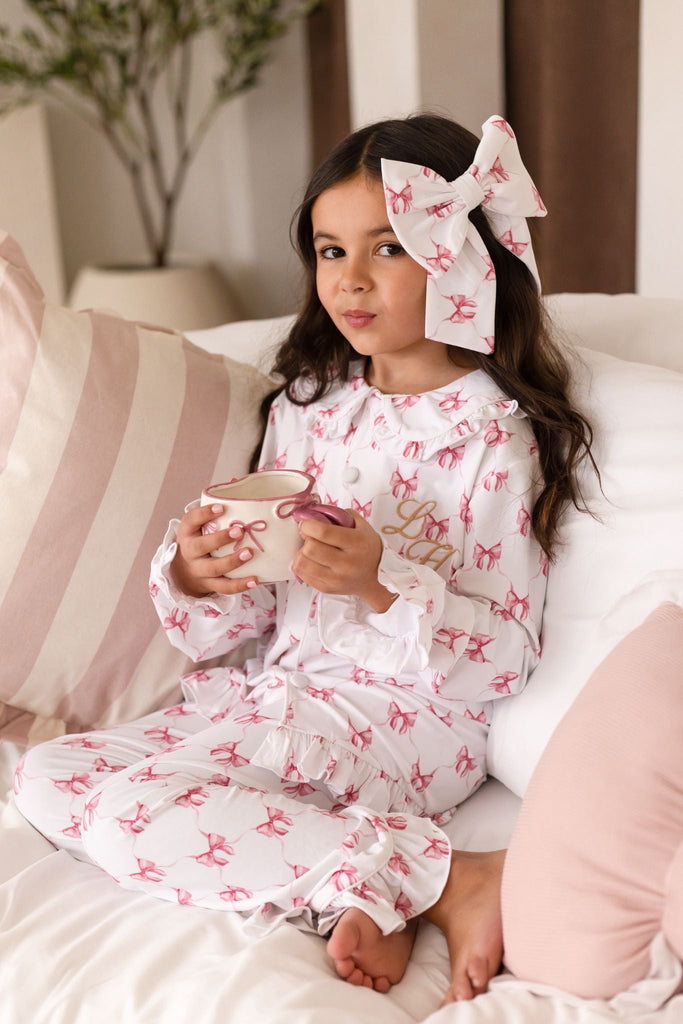 Designed to match our pink bow print pyjamas and baby grows perfectly.