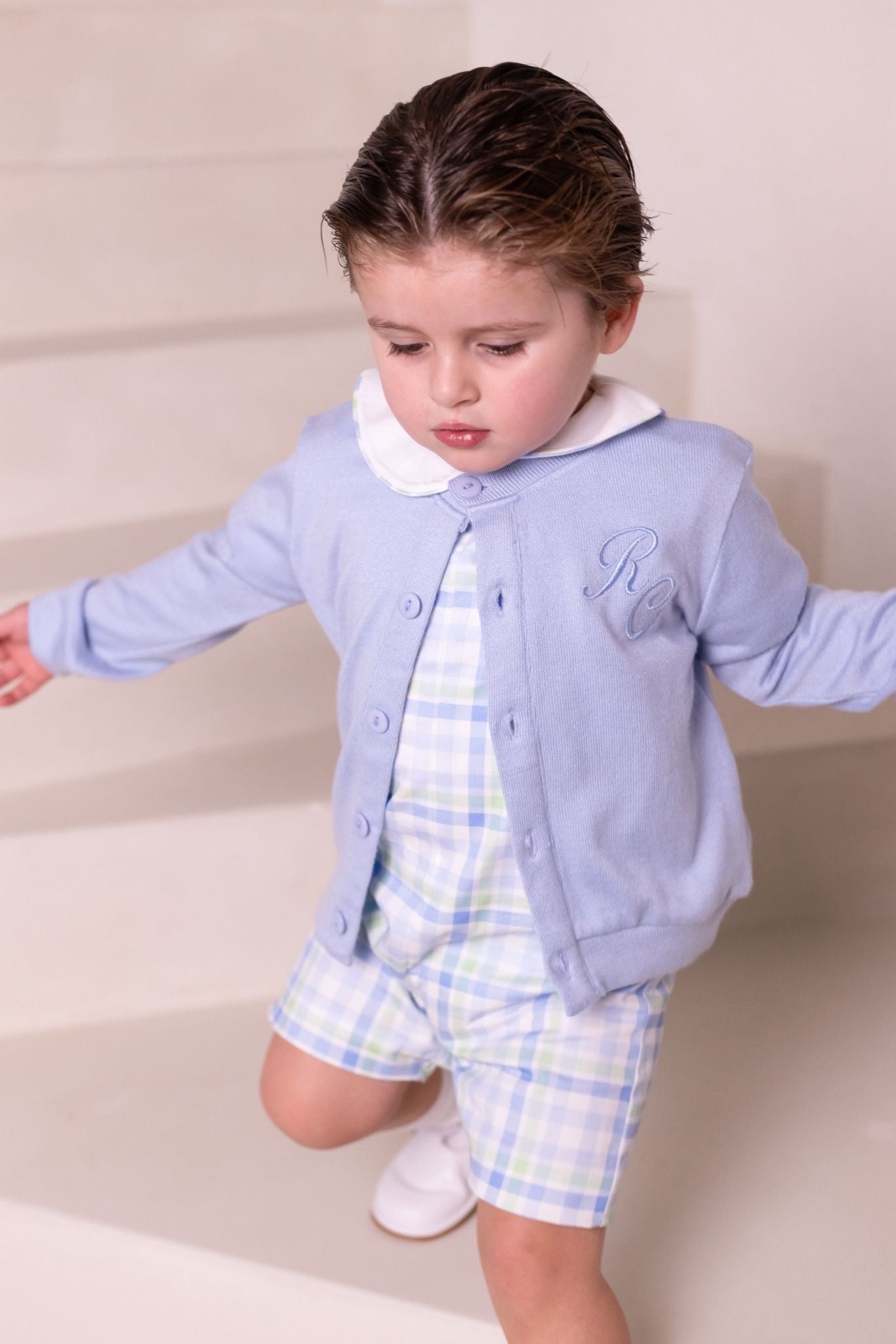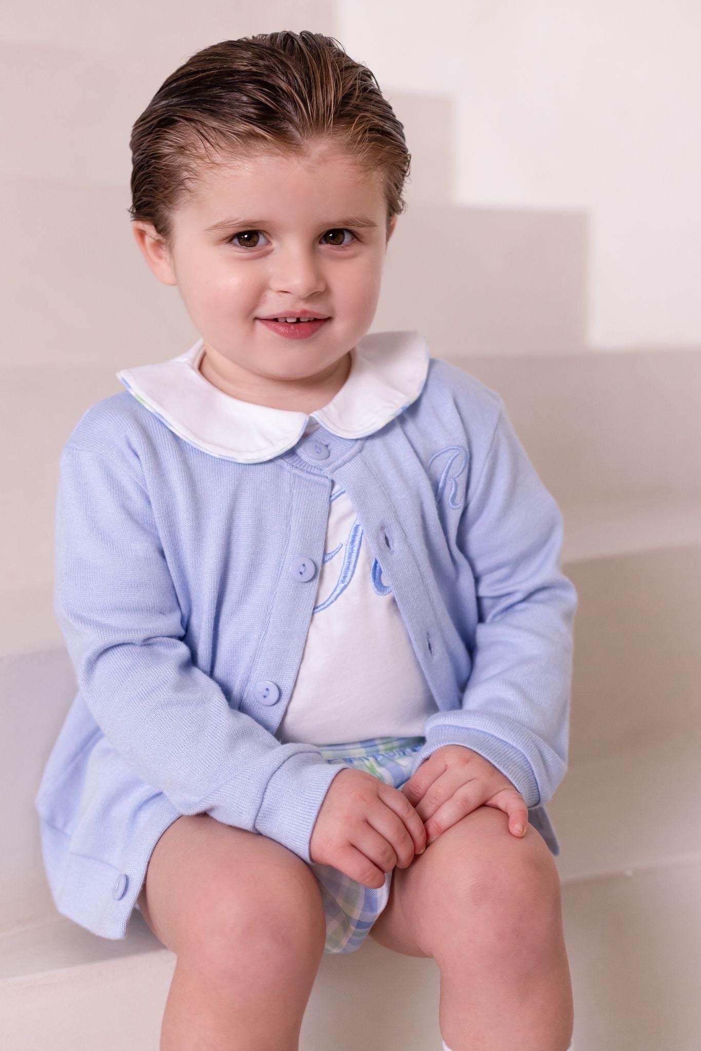 Embroidery details: Initials (maximum two) are placed on the breast in a complementary blue.