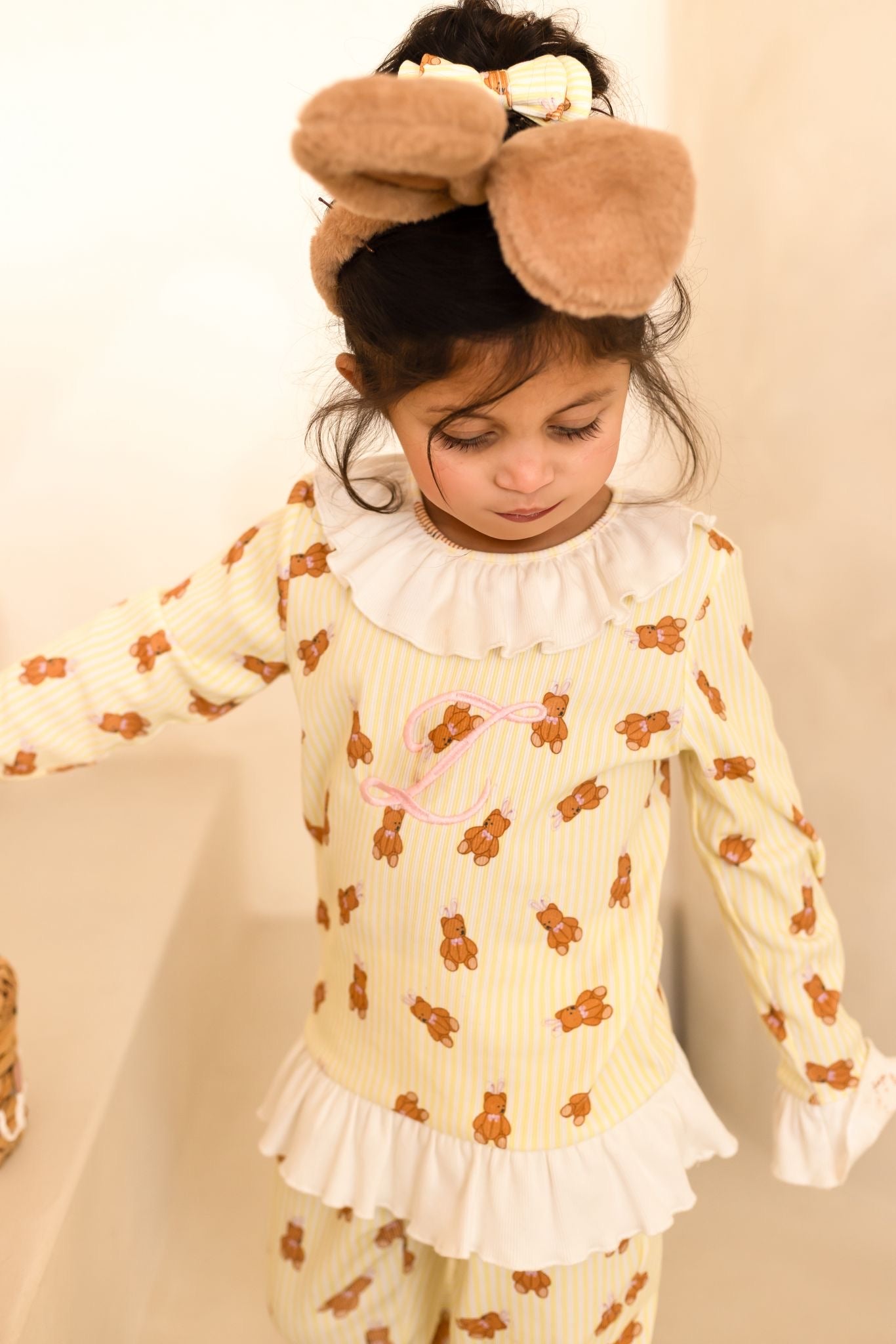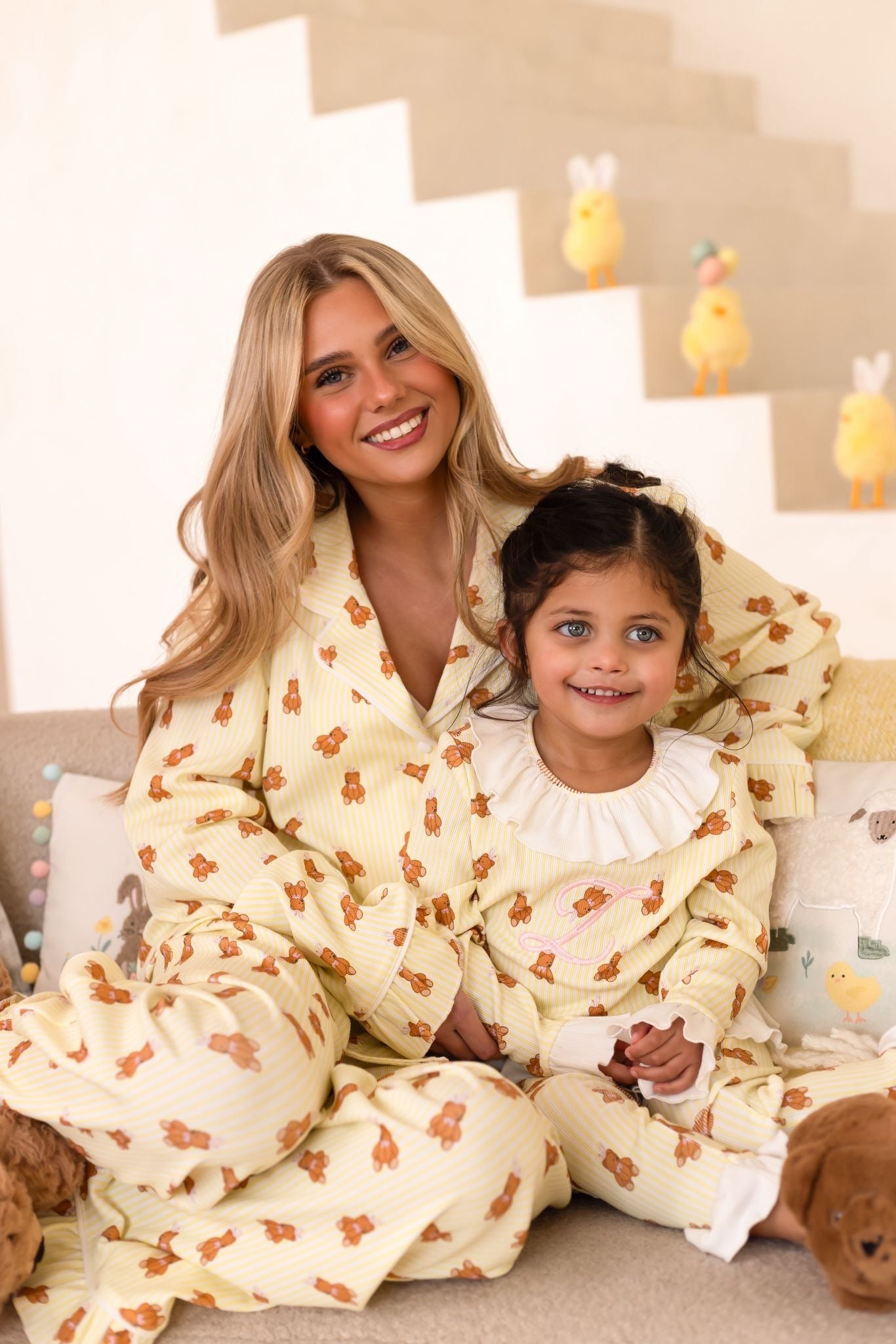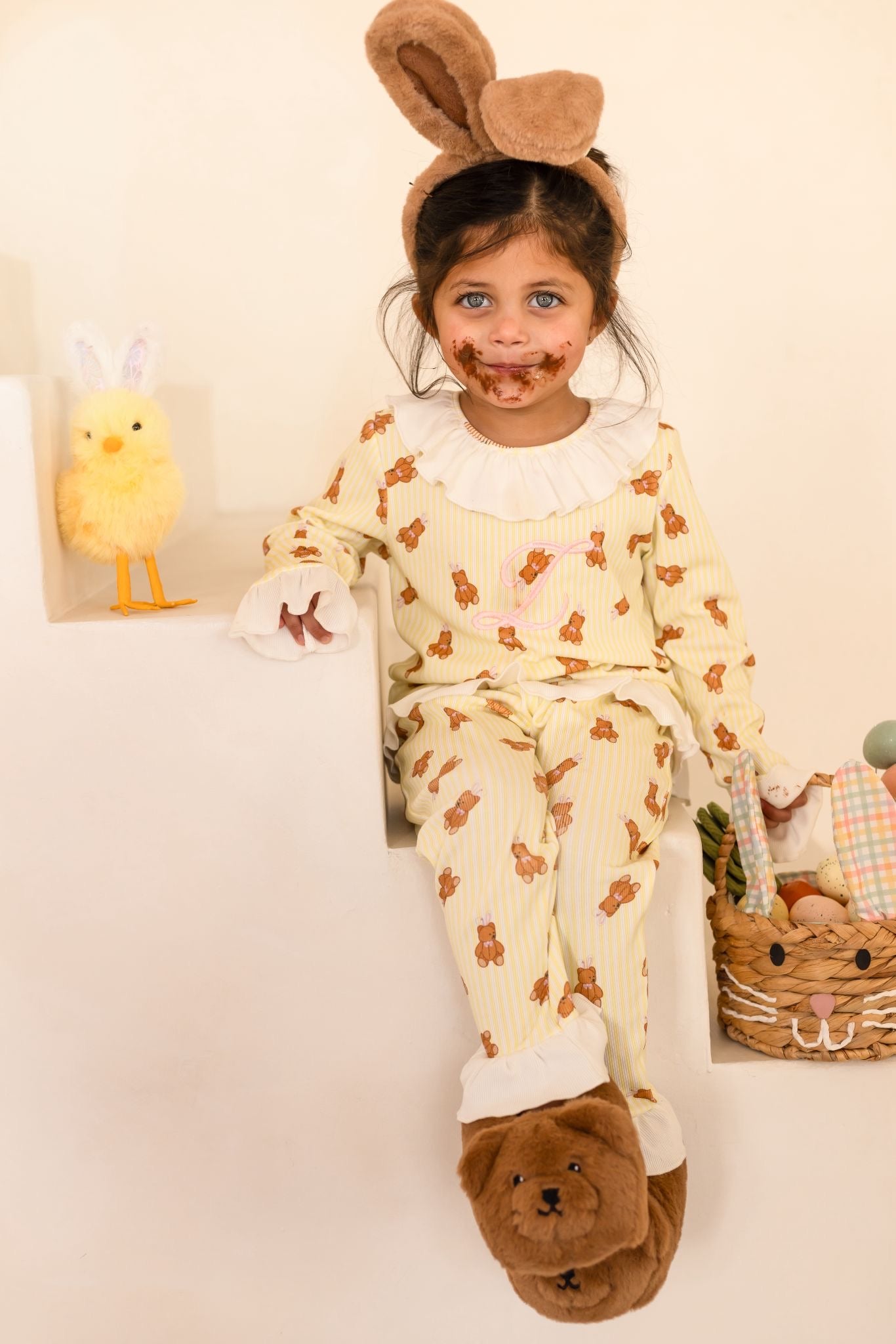 Snuggle up in our adorable Easter pyjamas, soft, cosy and featuring our Clark and Beau exclusive Roux Bear print. These pyjamas are perfect for egg hunts, cosy nights and magical morning memories.