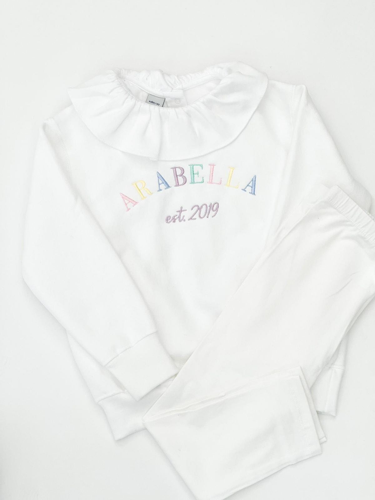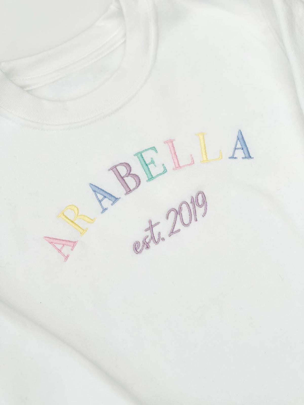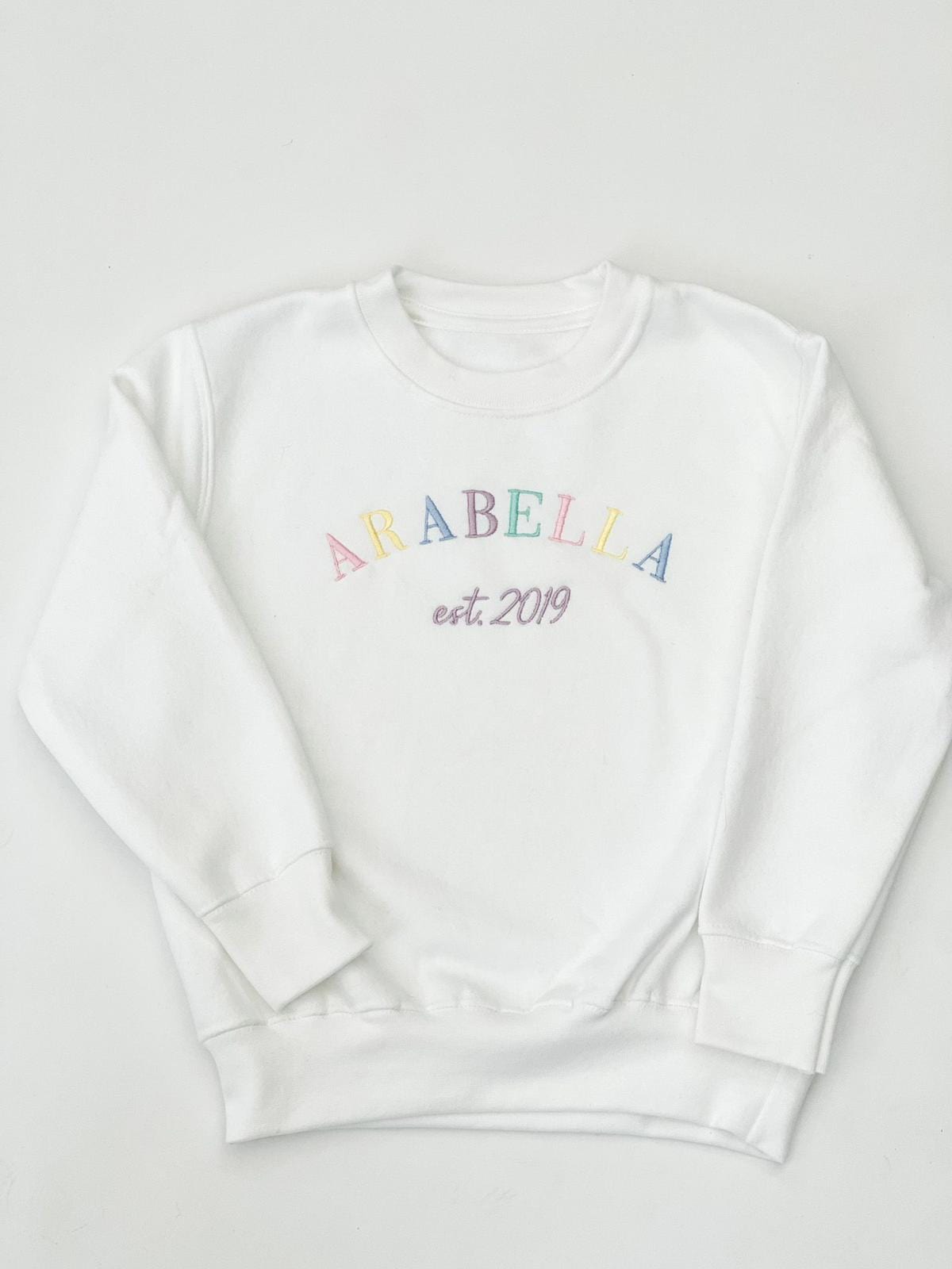 This collection is extra special and personal, the sweaters are designed to have your little ones name and the year of their birth. Images show girls pastels, but we have so many other options available such as boys pastels, or if you want a block colour just leave us a note.
