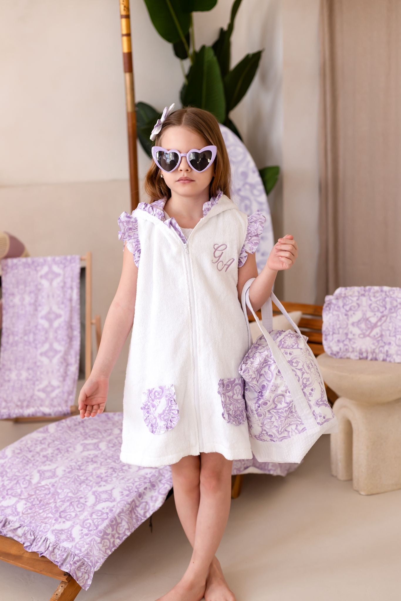 Girls Lilac Capri Towelling Coverup