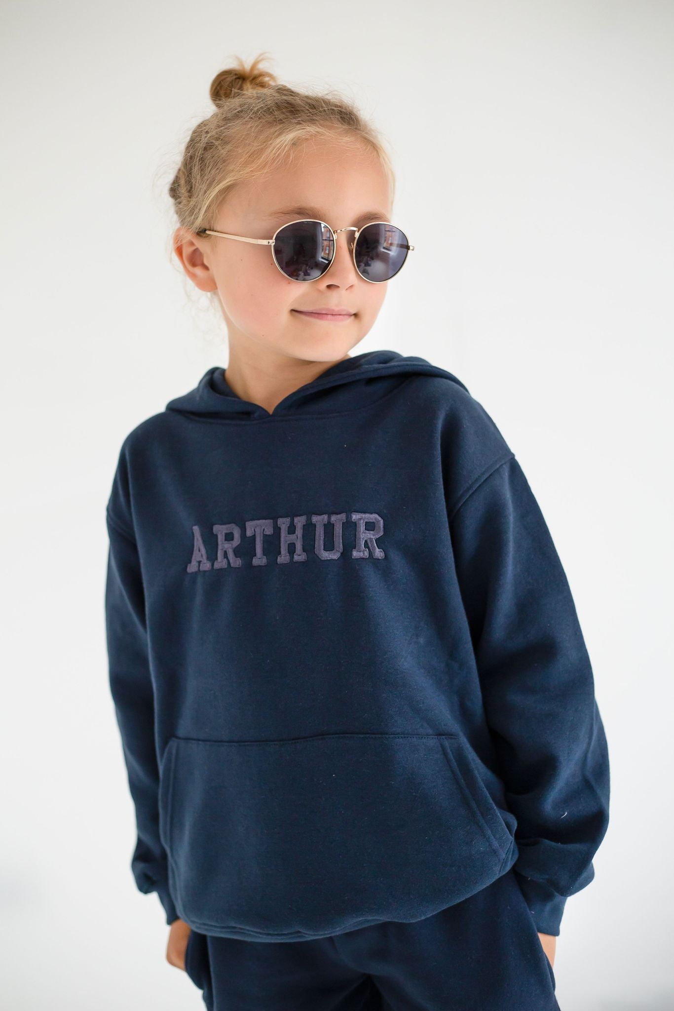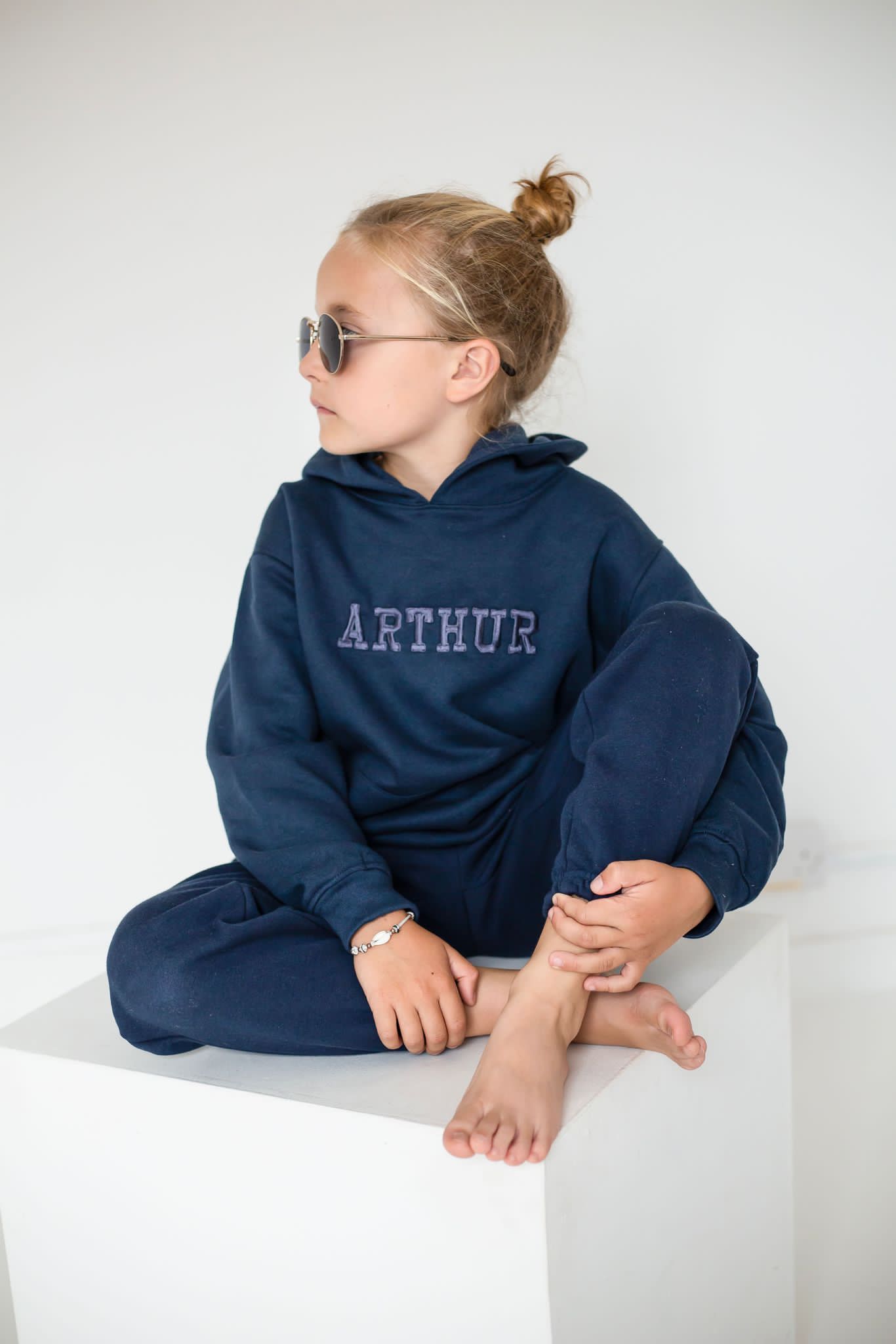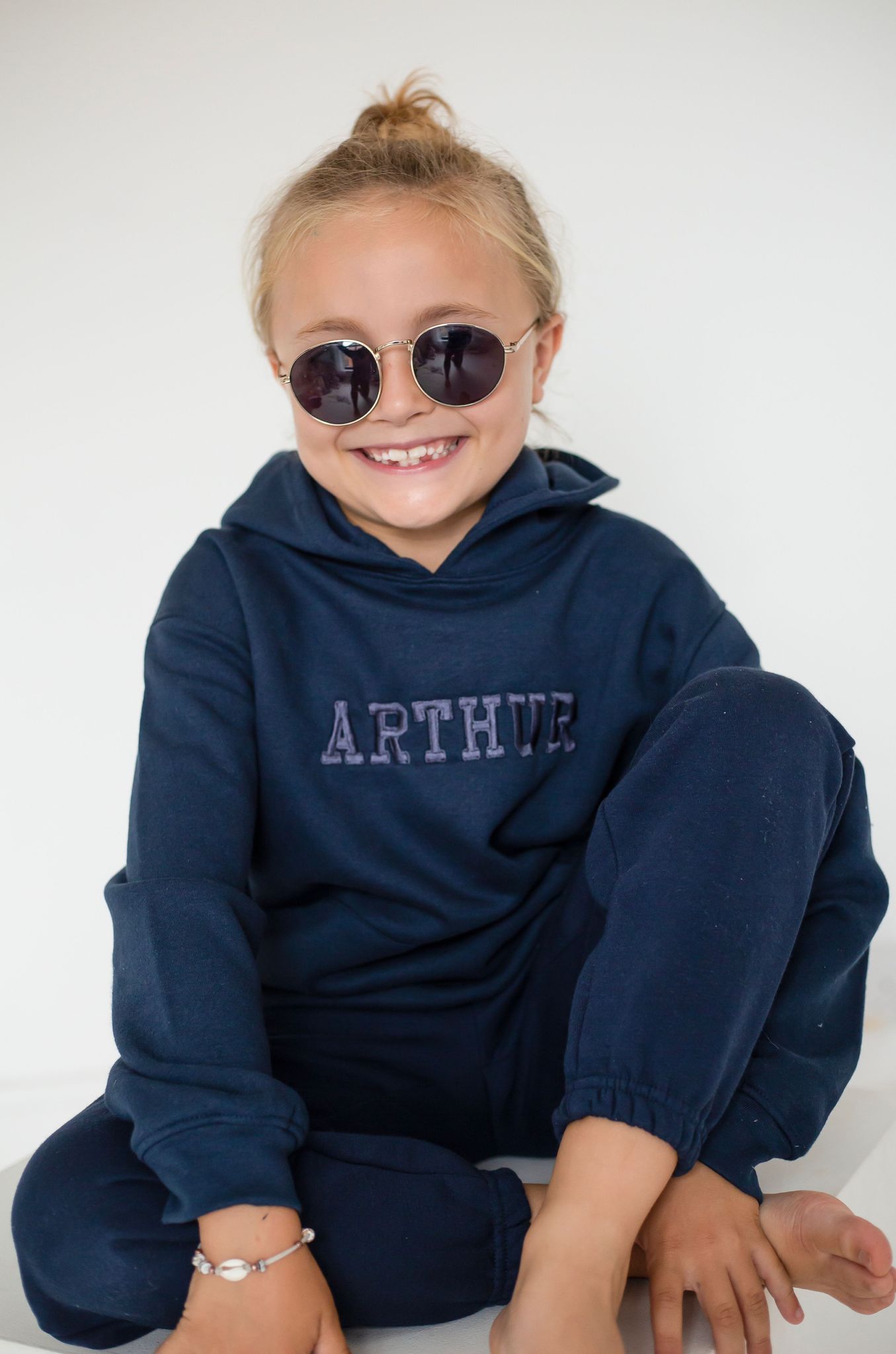 This collection is extra special and personal, the hoodies are designed to have your little ones names in our new font across the chest. Embroidery is in a colour of your choice.