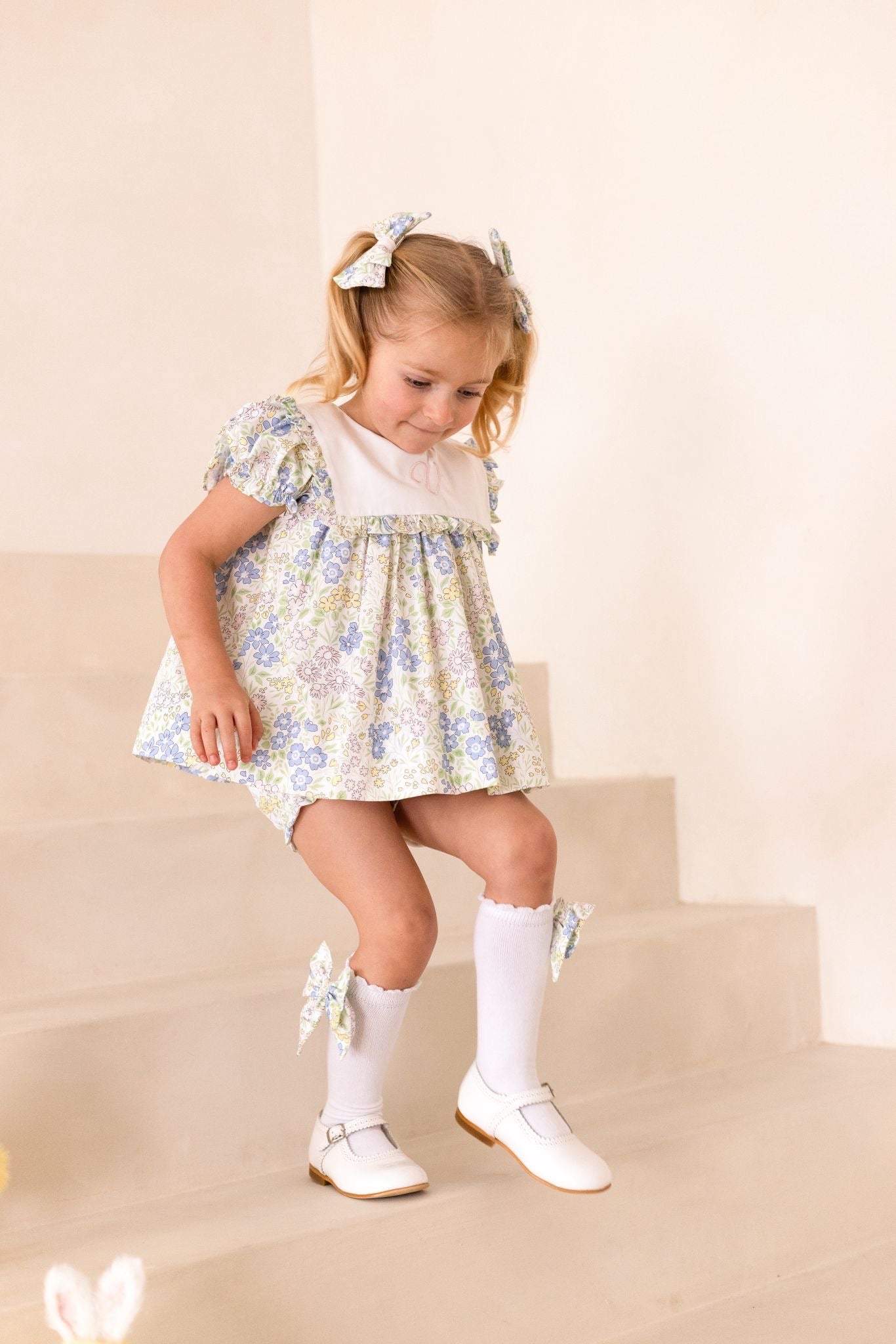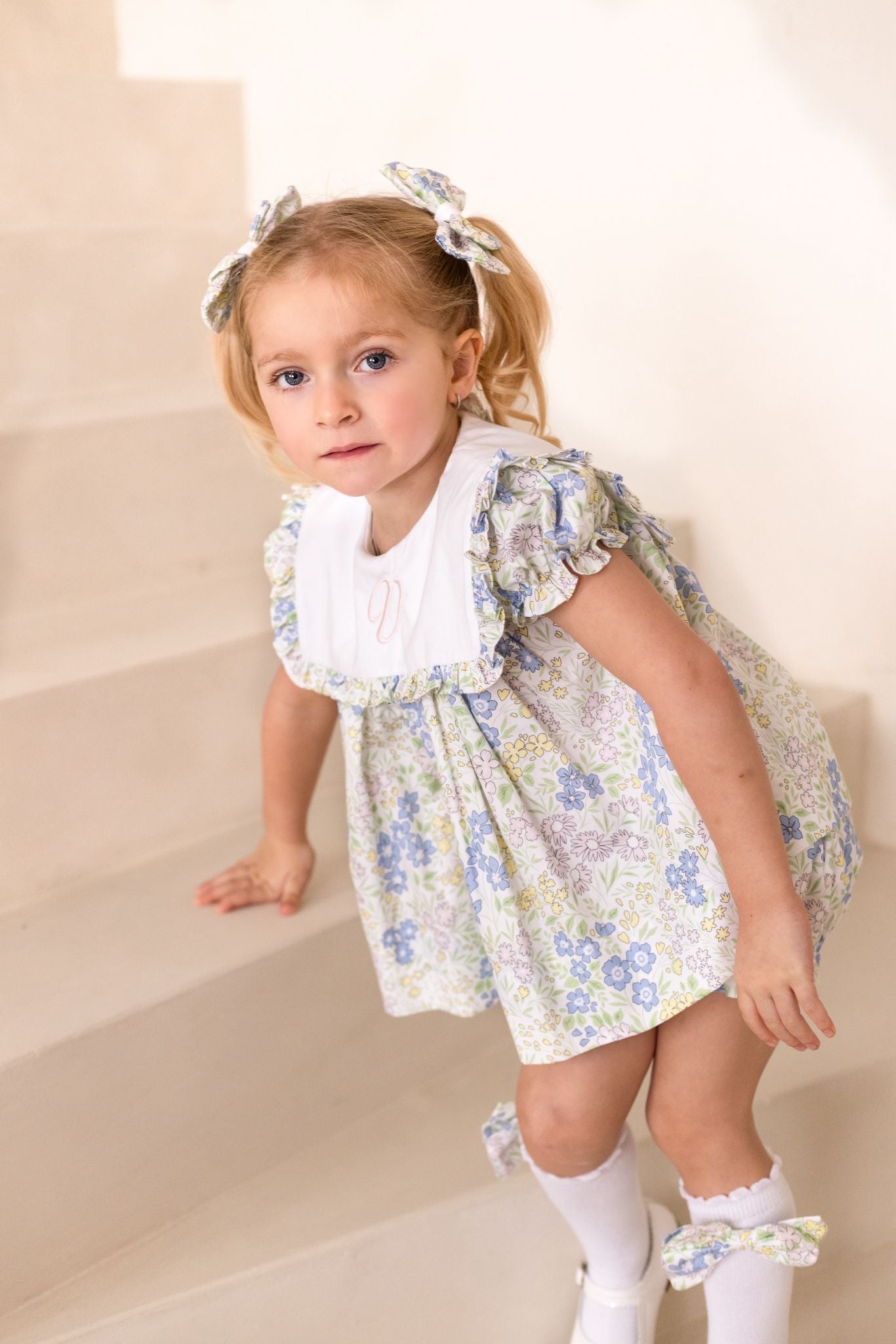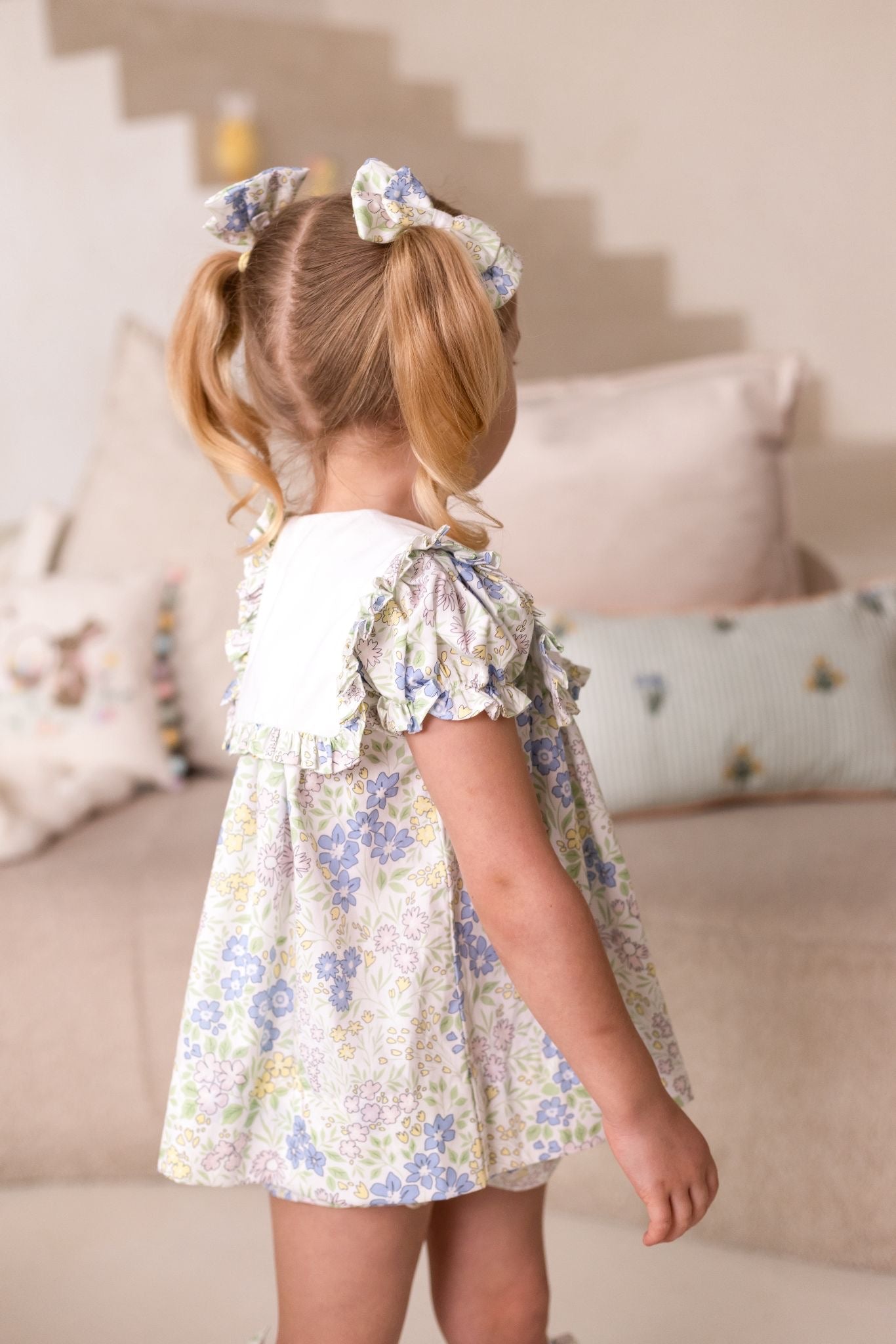 Girls Pastel Ditsy Sailor Collar Dress With Bloomers