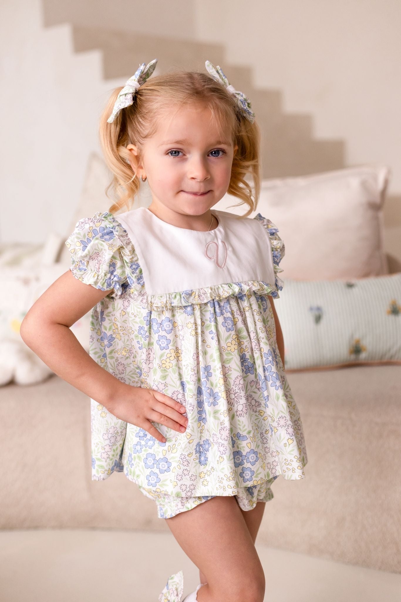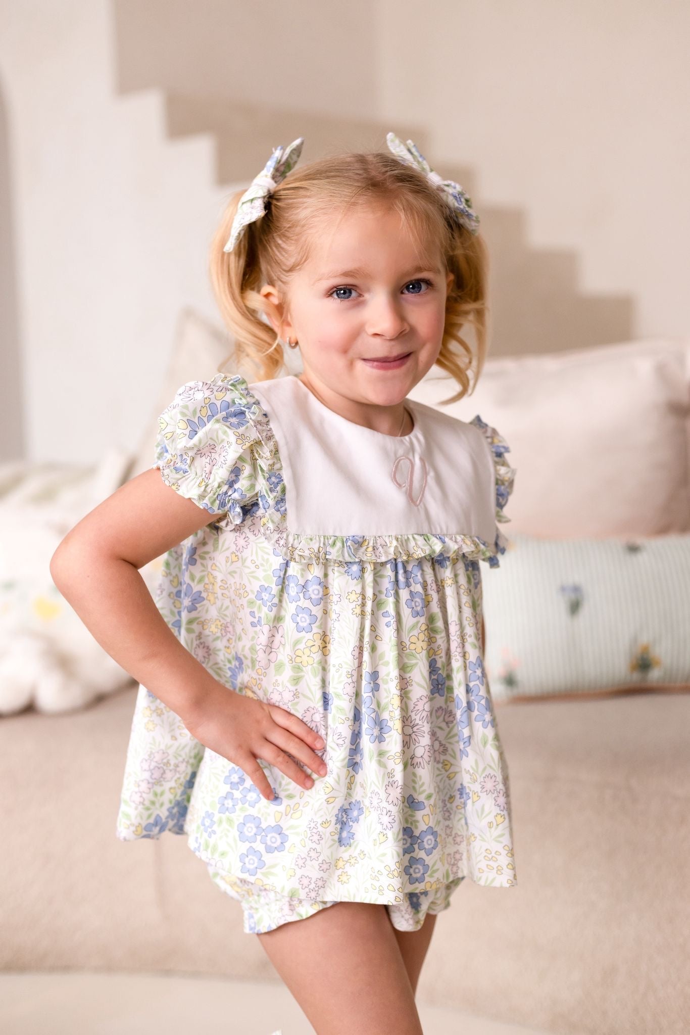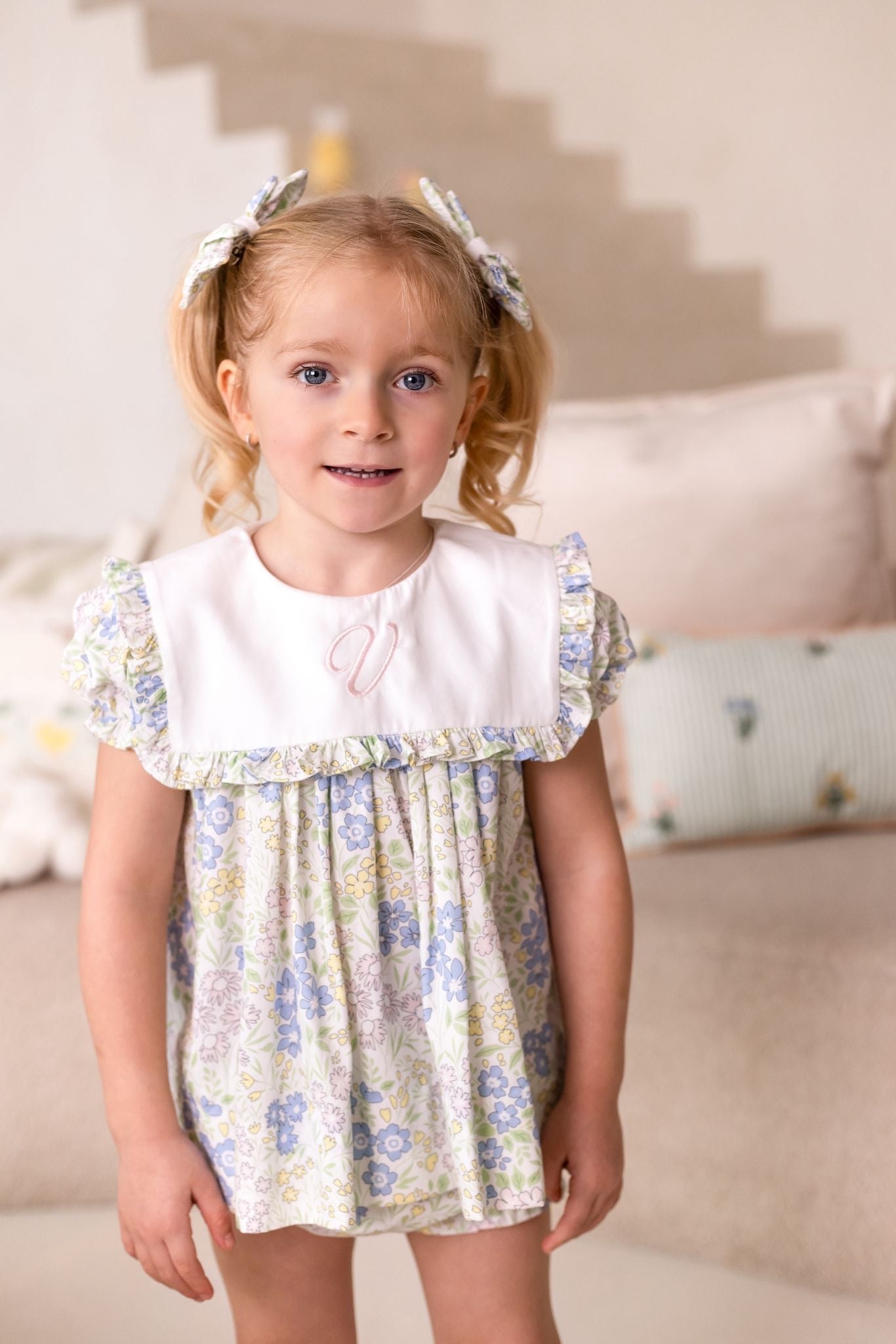 Girls Pastel Ditsy Sailor Collar Dress With Bloomers