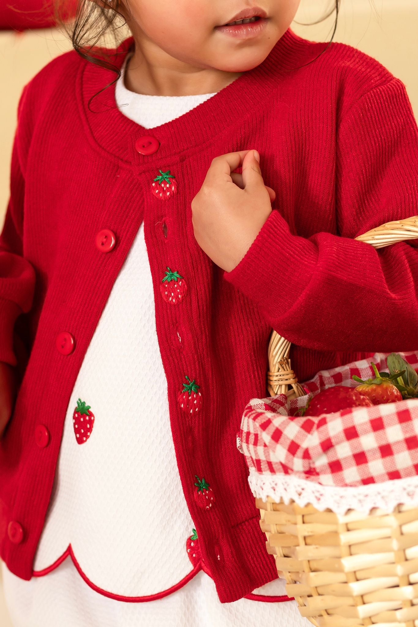 Girls Red Strawberry Cardigan