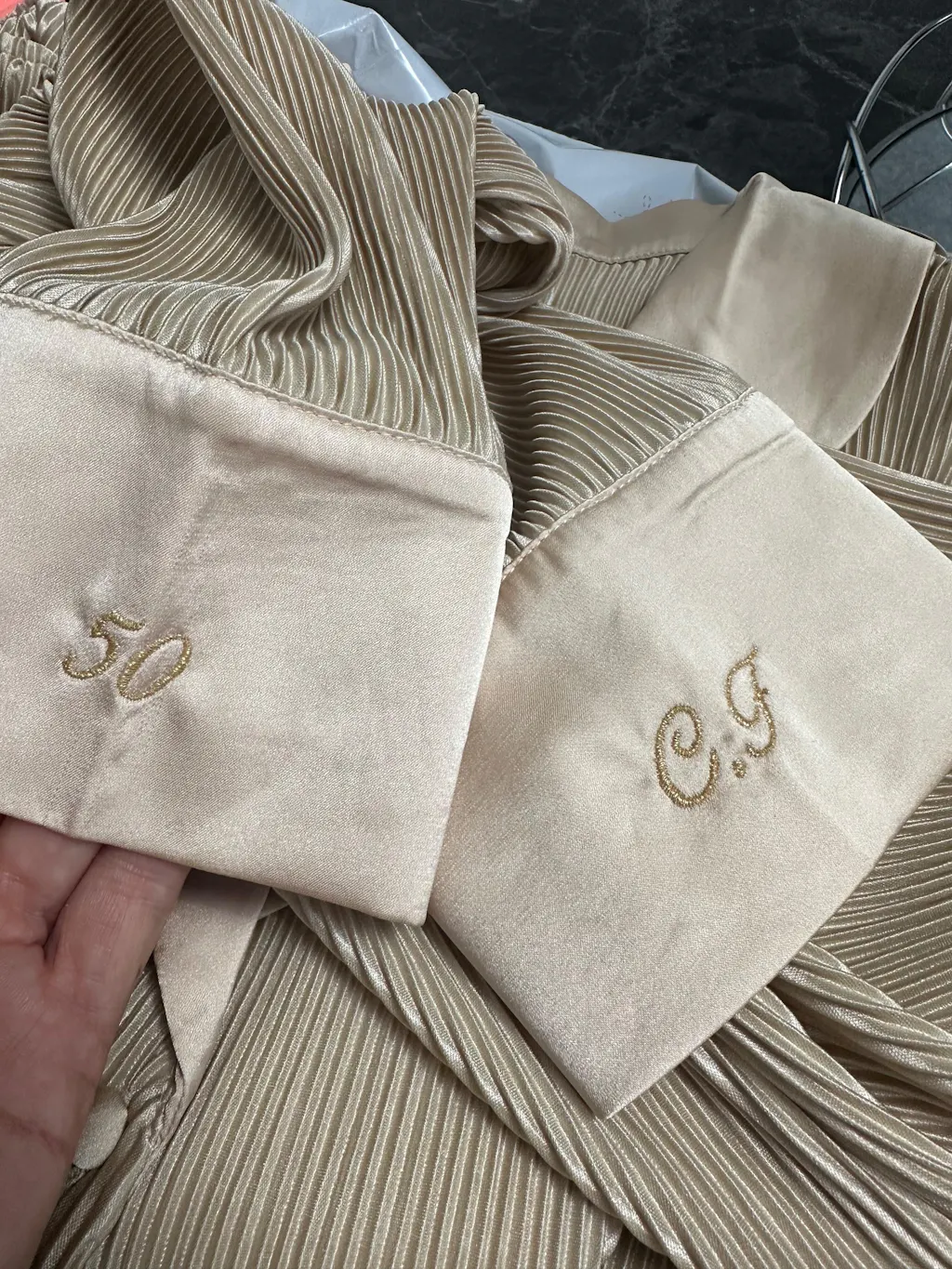 Initials (*maximum of two) are placed on the cuff of the sleeve in a colour of your choice.