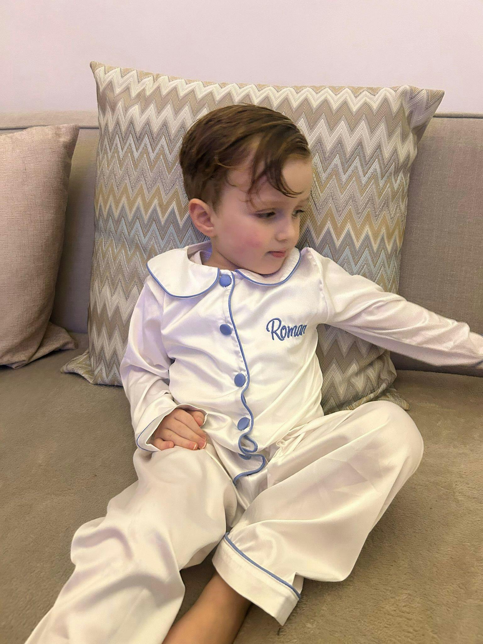 Snuggle down in style with a touch a luxury in our Clark and Beau 'Pearl' PJs. Our pyjamas move away from anything else you will find on the market and with complimentary embroidery they make them even more unique. With matching mummy and sibling available you can match your little darlings perfectly. Tuck your little one up in style, these are truly magical!