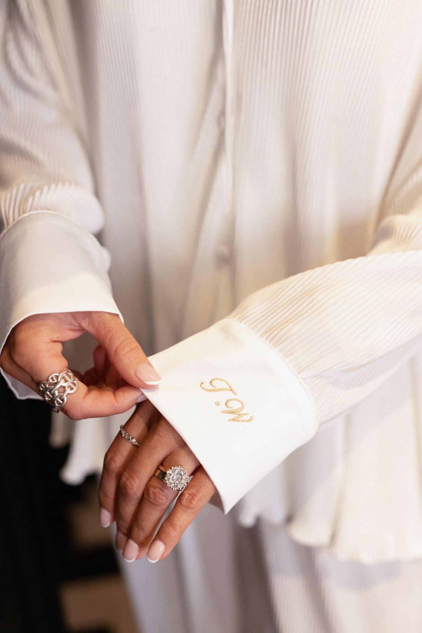 Initials (*maximum of two) are placed on the cuff of the sleeve in a colour of your choice.