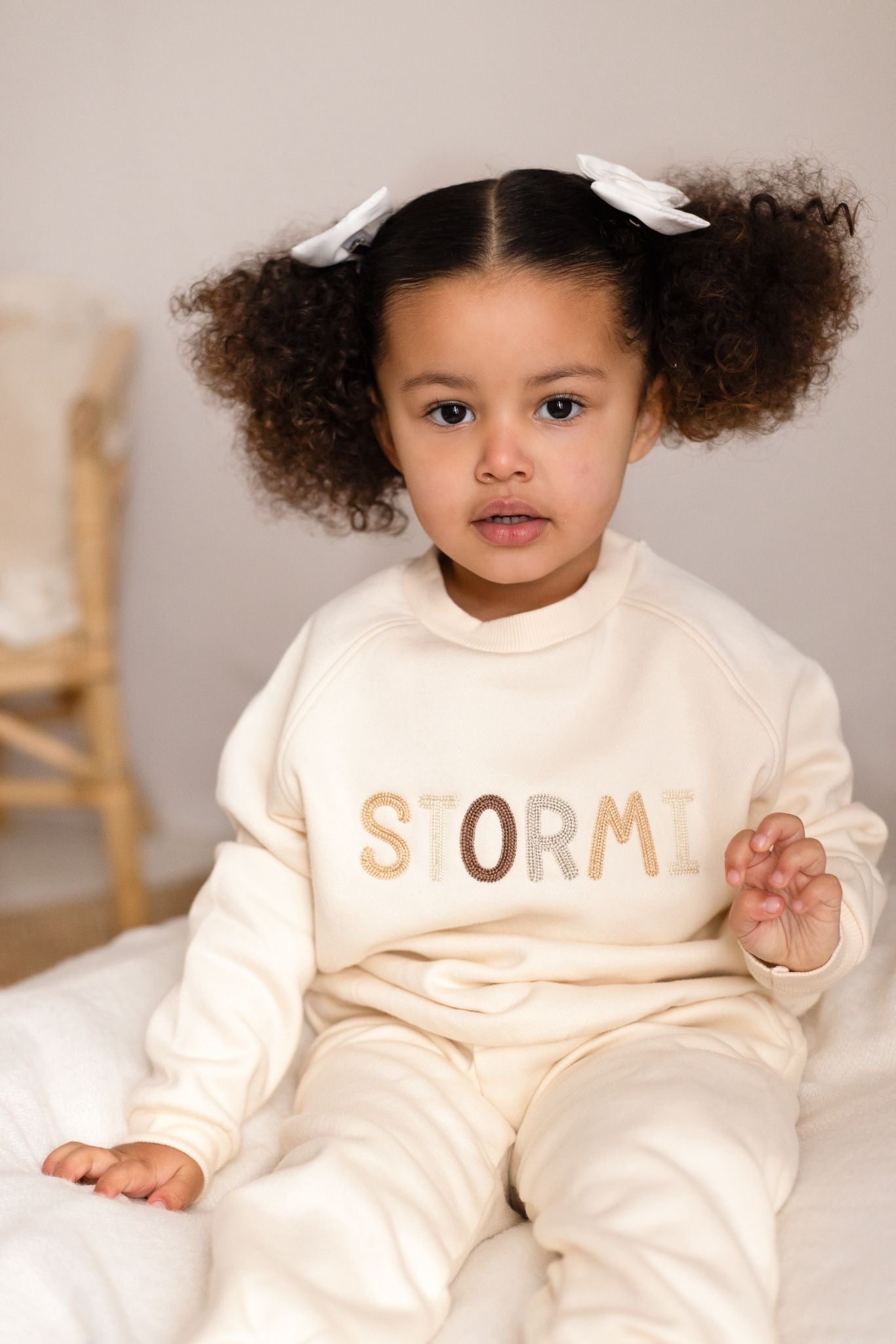 Embroidery Details: Embroidery is your little ones name in our new chain style font, embroidery is in a colour of your choice.